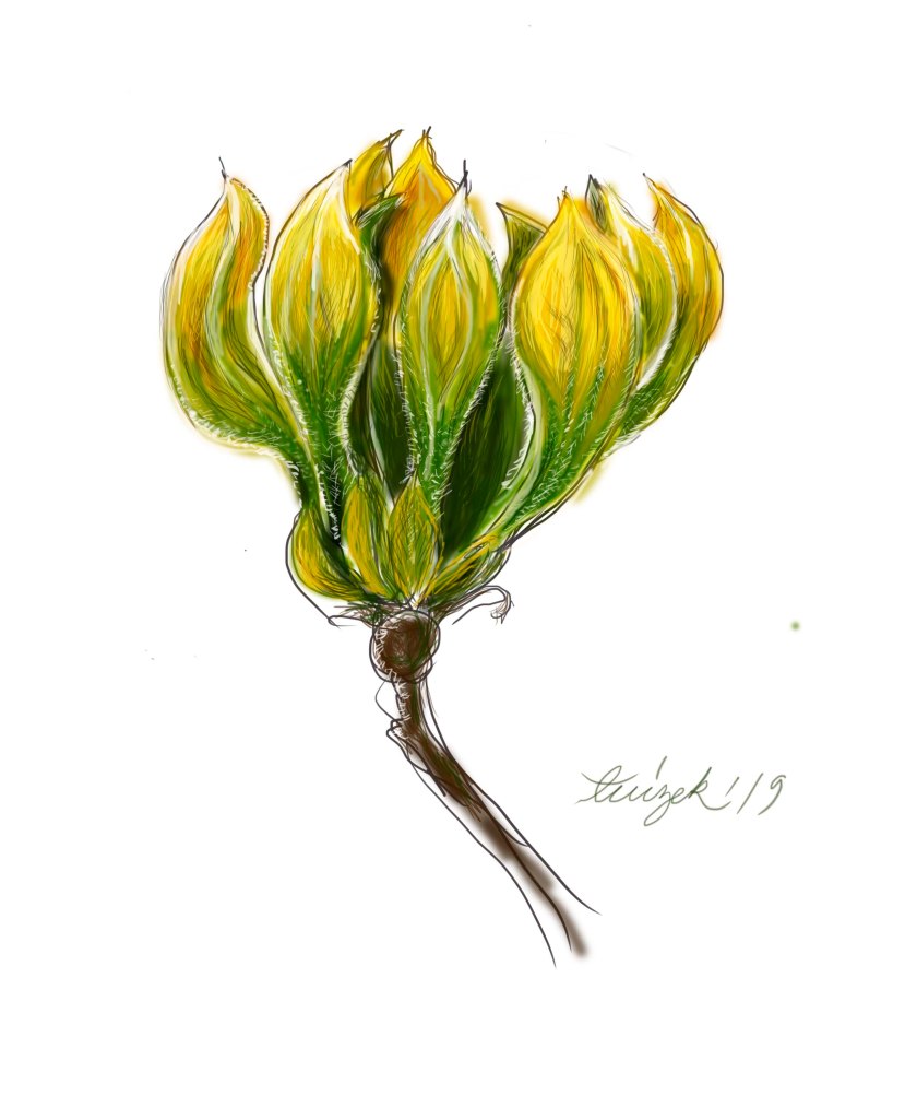 Otin kuitenkin aikalisän lainalaitteen kanssa ja toisena iltana sain kuin sainkin aikaiseksi jotain, ja toinen ikinä digitaalisesti photarilla ja wacomin laudalla piirtämäni kukka alkoi aiheuttaa jo oppimisen ilon ja tyytyväisyydenkin tunnekirjoa.