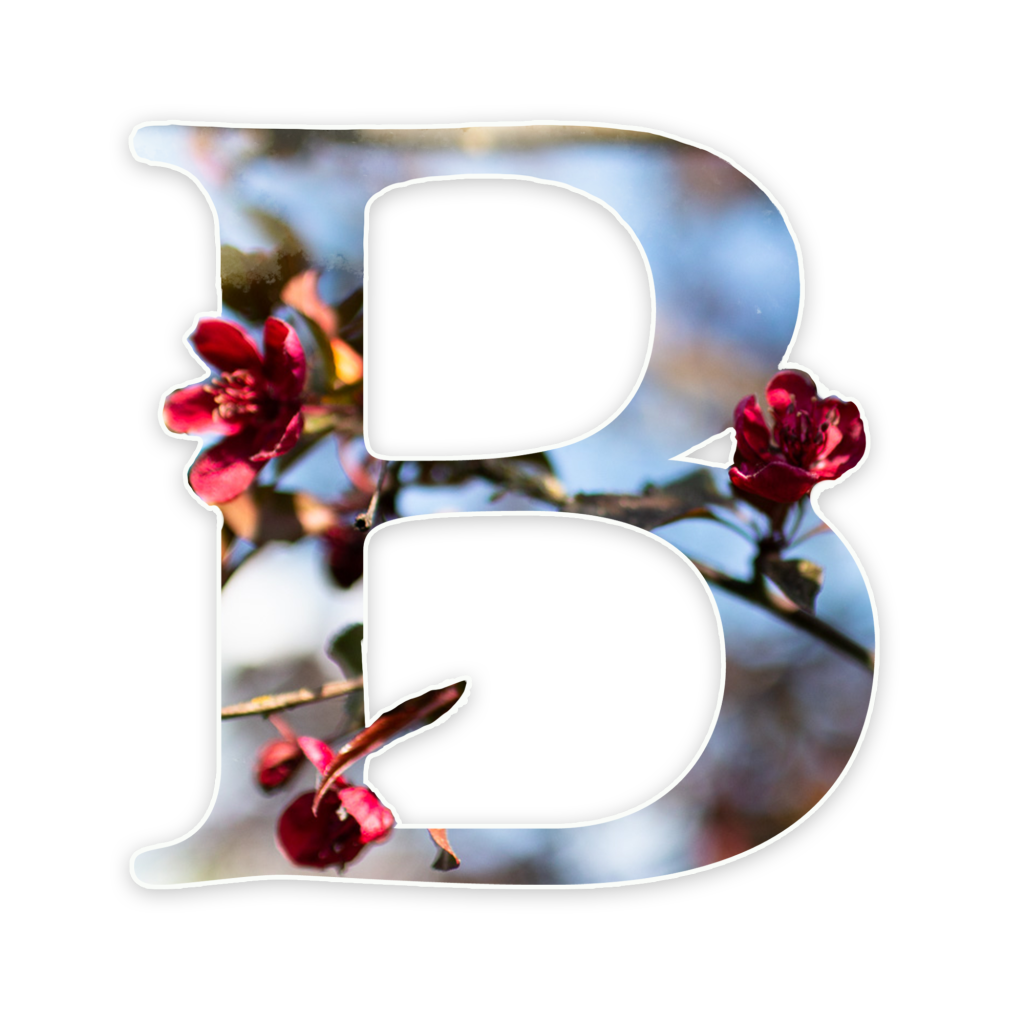 Tiesin heti, että haluan tehdä kukkaisakkoset ja hyödyntäisin niissä aikaisemmin ottamiani valokuvia. Tein projektissa ihan ensimmäiseksi aakkoset Photoshopilla.